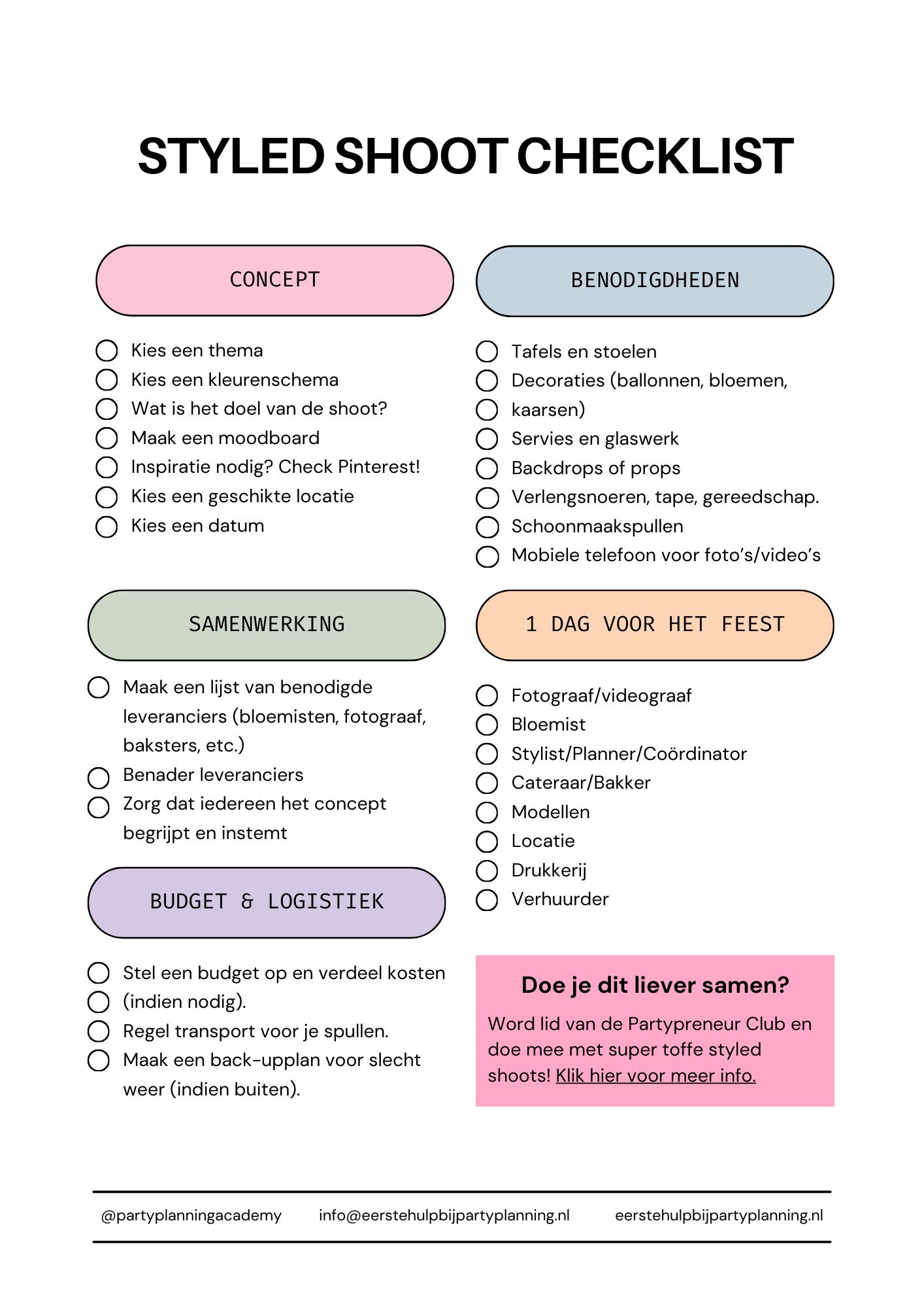 Voel je dat je vastloopt en heb je echt een zetje nodig om die eerste (of volgende) klanten binnen te halen? In mijn Masterclass Party Planner Client Boost leer ik je voor slechts €33,- hoe je jezelf onweerstaanbaar maakt voor je doelgroep. Geen vage marketingpraat, maar concrete stappen om jouw inbox weer te laten stromen. Ben je klaar voor die boost?